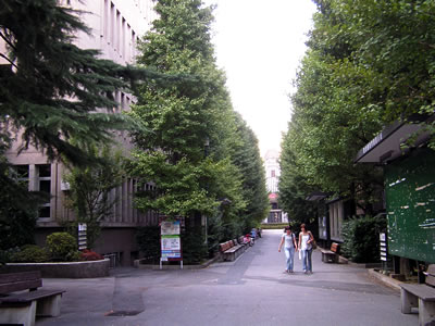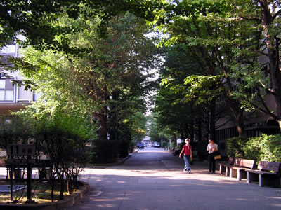 写真左手に入り、蝉時雨のキャンパスの中を歩いてみる。