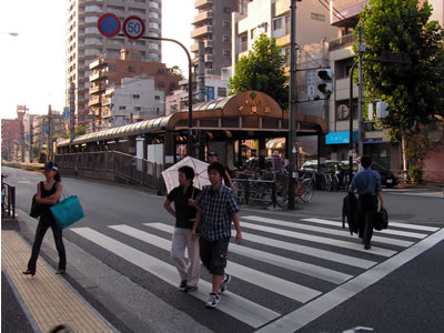 自動車と同じで、信号では止まって、青になるのを待つ。