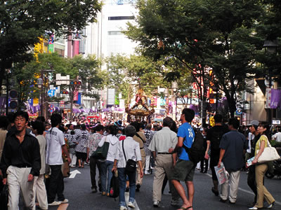 後から後から御輿が繰り出し、道玄坂を練り降りていく。