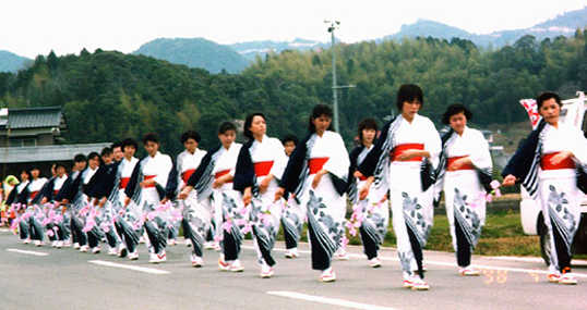 御式年祭は10年に1度おこなわれる束荷(つかり)神社への奉納祭です。地元では「ごねんさい」ともよばれています。[1998年4月4日〜5日]