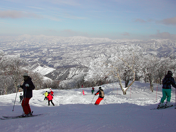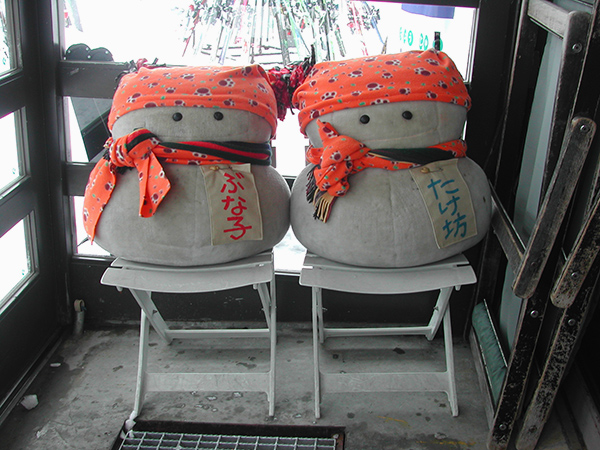 電車とバスを乗り継いで、10時45分、秋葉の湯の近くにある「モルゲンロートやまざき」に到着。 山頂のやまびこゲレンデからの素晴らしい眺め。 上ノ平ゲレンデ。向こうの毛無山の頂上がやまびこゲレンデ。 野沢温泉村を望む パラダイスゲレンデのパノラマハウス「ぶな」にいるぶな子とたけ坊。